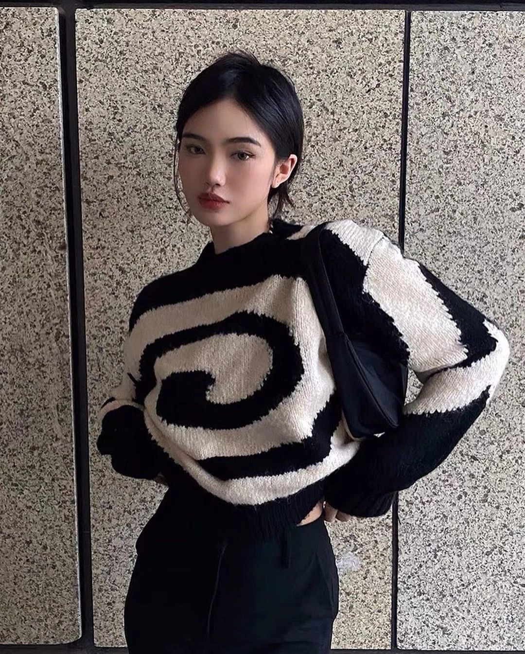 Sweater rajut berbahan wol dan katun dengan motif spiral.